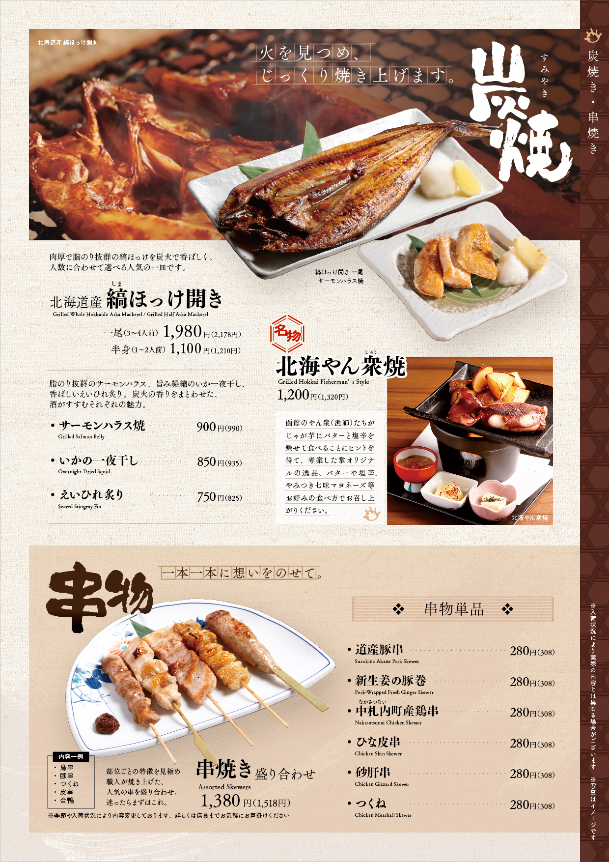 北海道の新鮮な海鮮や豊富な地酒を愉しみつつ、古民家風の温かみある掌で過ごす一時。